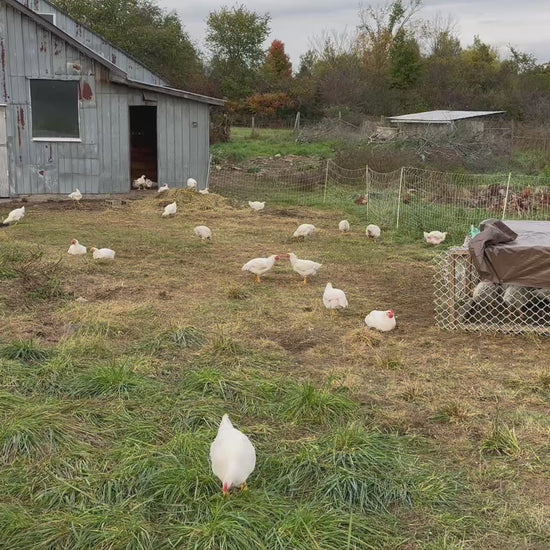 Poulet élevé en paturage, en liberté sans hormones.